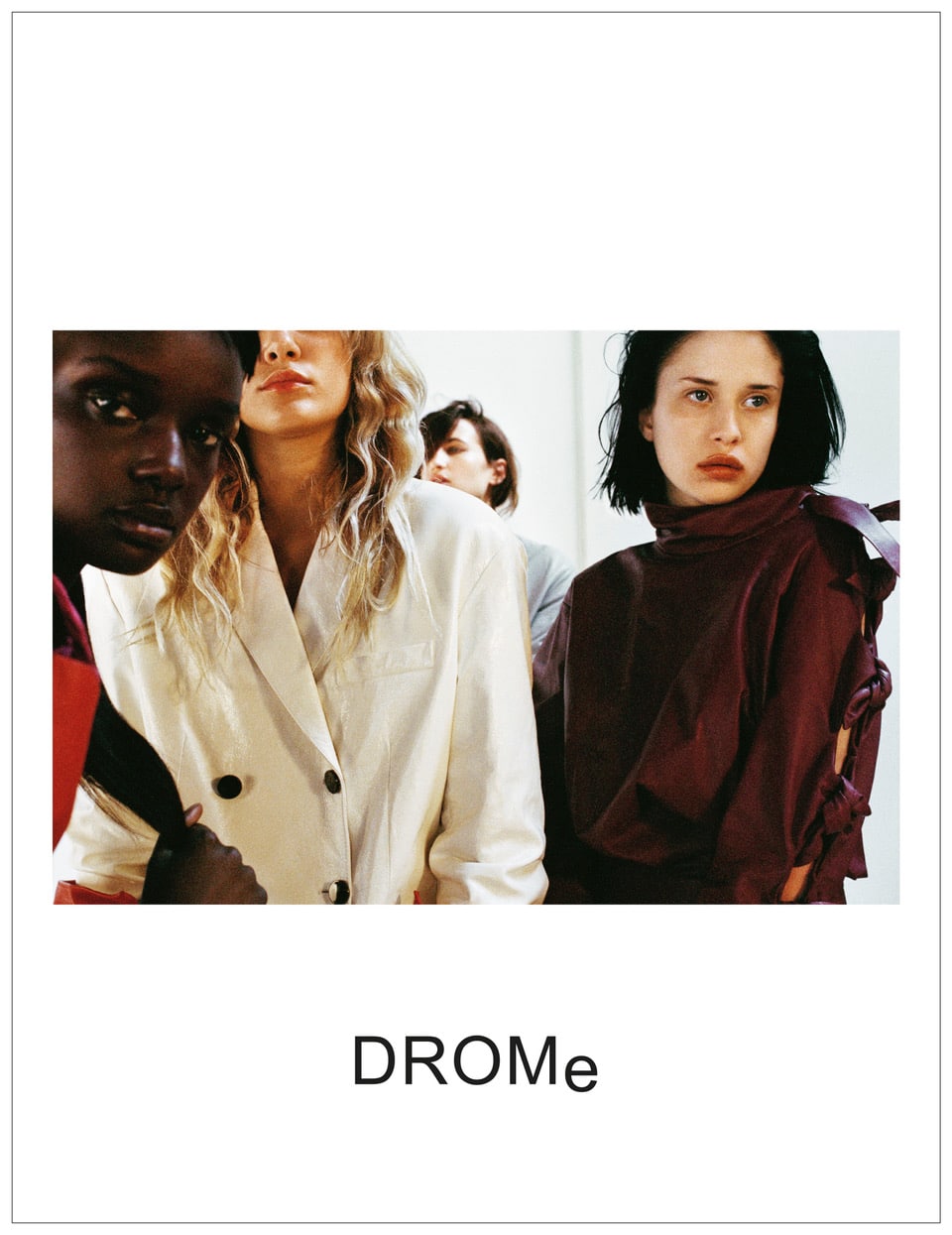 Racconta Marianna: “Questa stagione ho voluto rinnovare la collaborazione con Emma e Brianna per lavorare su un progetto ancora più forte e più interessante. Le immagini di Brianna sono capaci di comunicare i sentimenti più crudi e reali dei soggetti che fotografa ed ho voluto trasportare queste sue particolarità nella nostra nuova campagna. Abbiamo raccontato la donna DROMe attraverso un gruppo di ragazze vere, fragili e sicure allo stesso tempo, la cui bellezza emerge dalla forte personalità”. Le fa eco Brianna Capozzi: “Abbiamo voluto concentrarci su un gruppo di donne diverse per ritrarre le diverse texture e dimensioni della collezione”.
