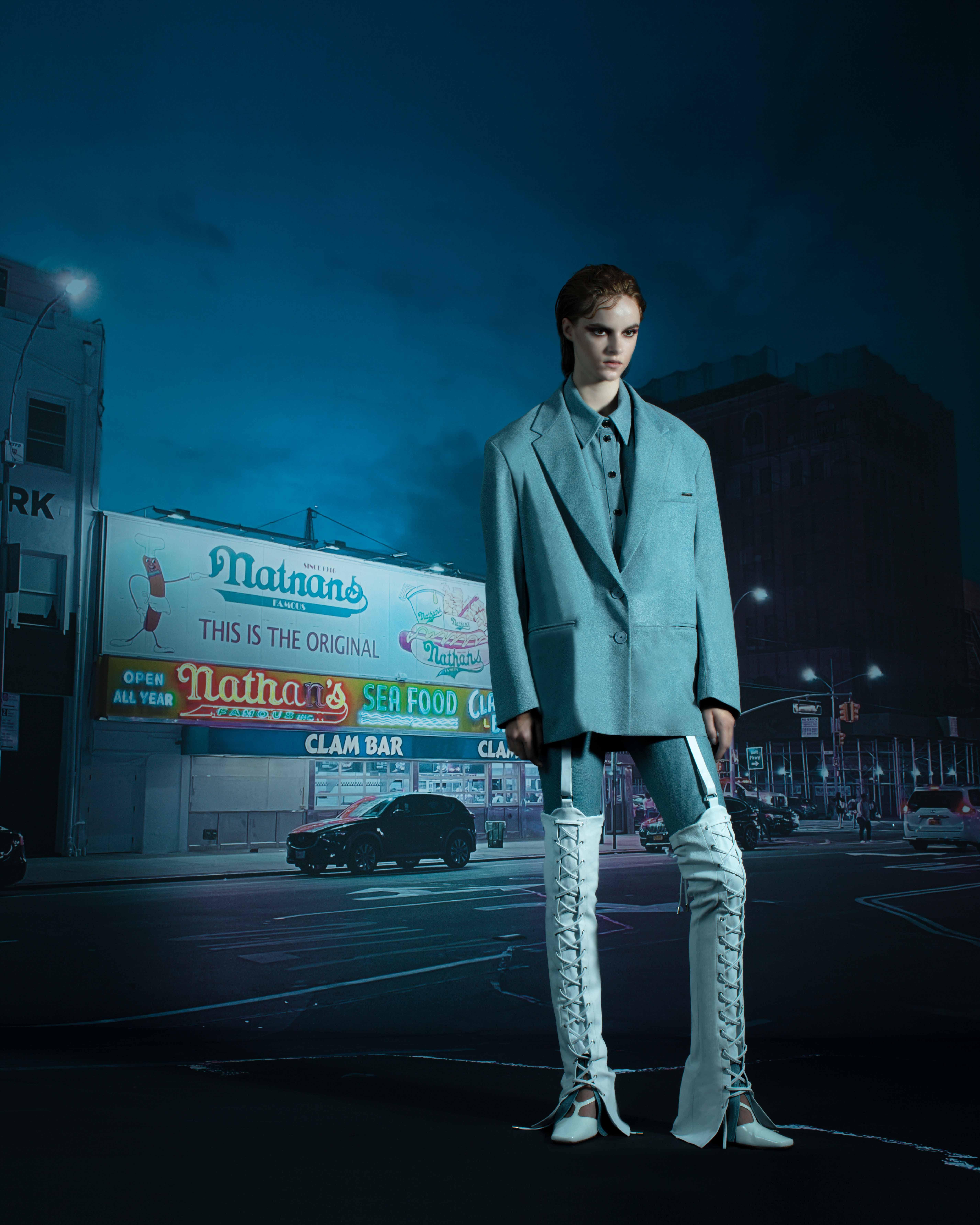 La linea F della metropolitana di New York è un palco dove questa eterogeneità va in scena ogni giorno: partendo dal Queens attraverso Manhattan e poi Brooklyn, per finire a Coney Island dopo 40 fermate, il treno attraversa quartieri e zone urbane diversissimi, accogliendo ad ogni fermata persone di ogni tipo. La successione senza fine di individui mai uguali in discesa e in salita tra le carrozze della metro ha ispirato questa Collezione: il modo in cui il loro aspetto cambia a seconda delle fermate, le storie che i loro look raccontano e quelle che invece possono solo essere immaginate. Il panorama sociale che la metropolitana riunisce e accoglie.