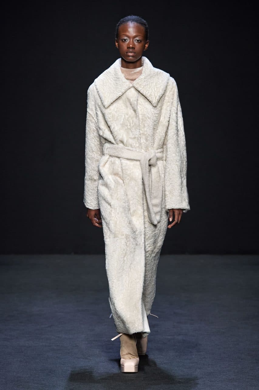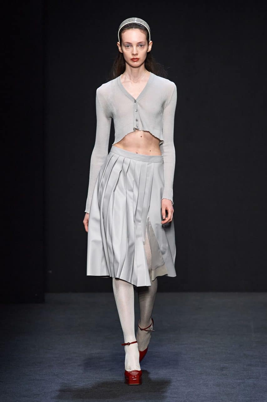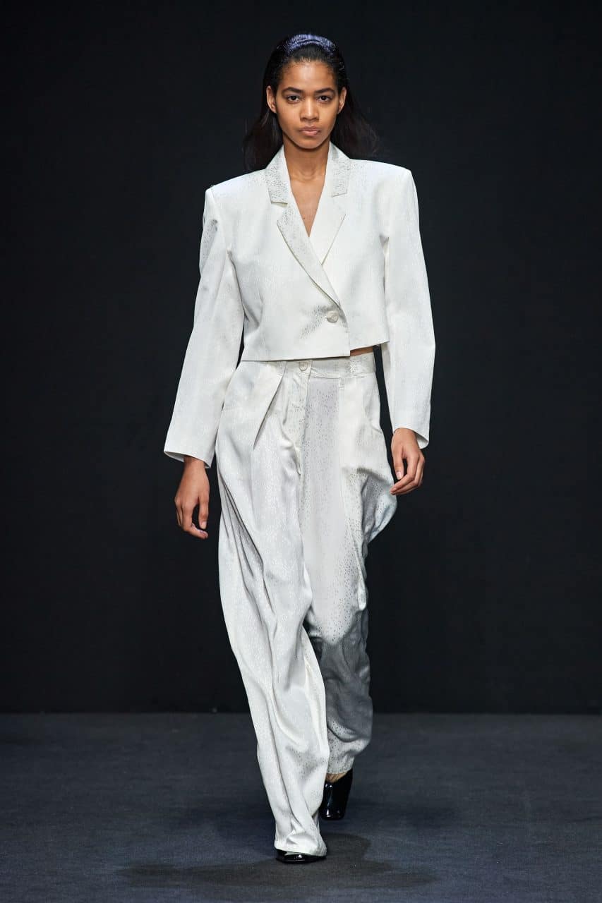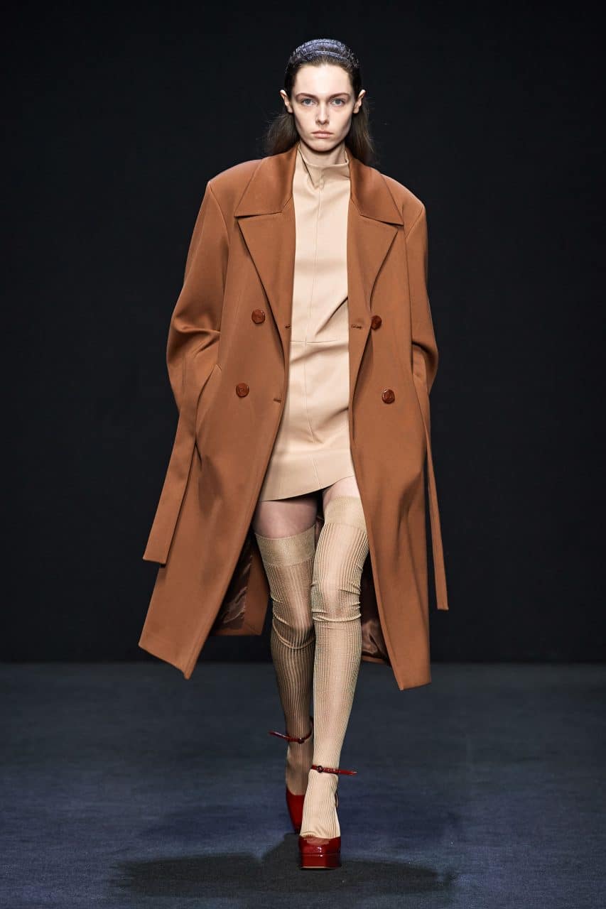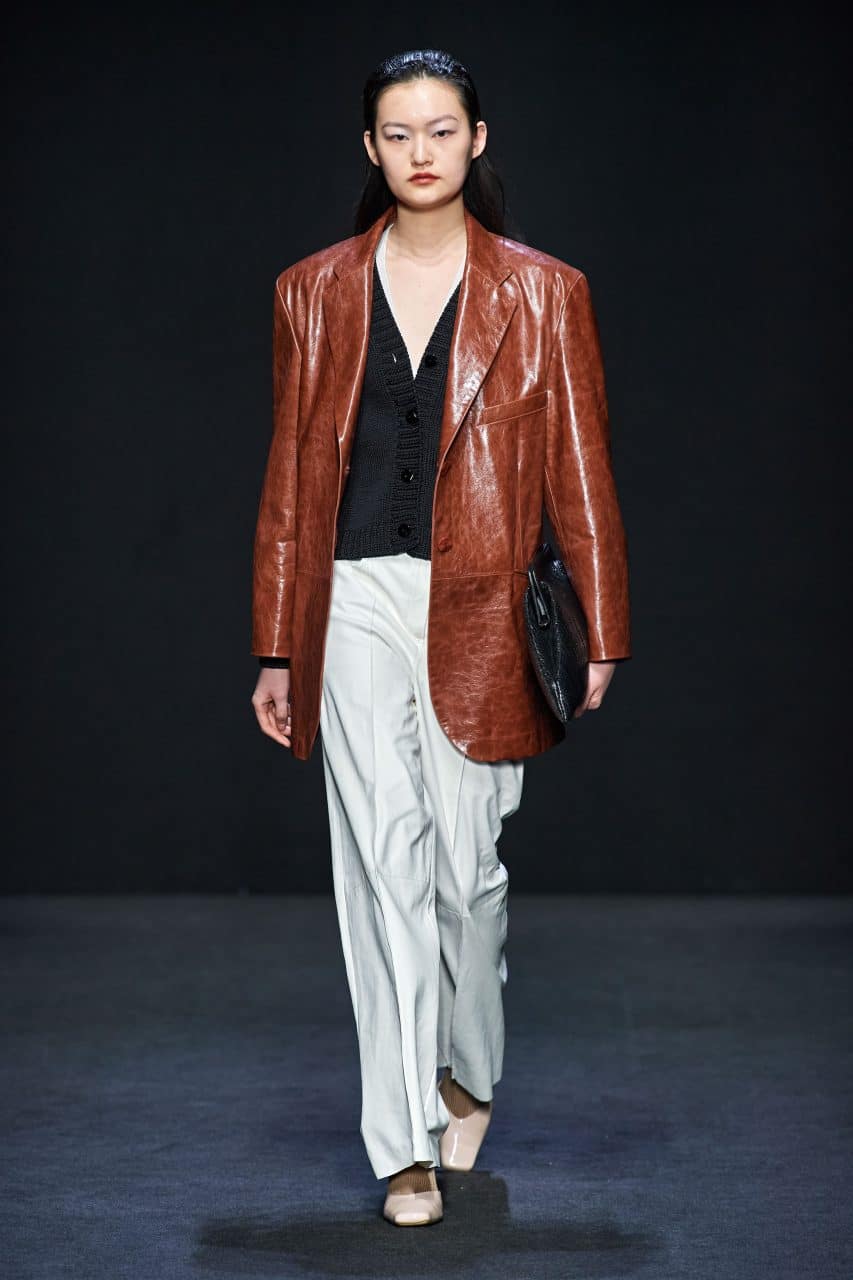 Each look involves a contrast: male oversized coats and jackets are combined with cropped volumes and mini dress with deep side slits, tough surfaces alternate with airy transparent fabrics, squared cuts are balanced by refined features, such as light ribbed knitwear and delicate retro inspired lingerie. The lines recall the late eighties/early nineties, but with a minimalist and essential approach. The protagonist of the collection affirms her sensuality by accepting and unveiling all her contradictory innerworlds.