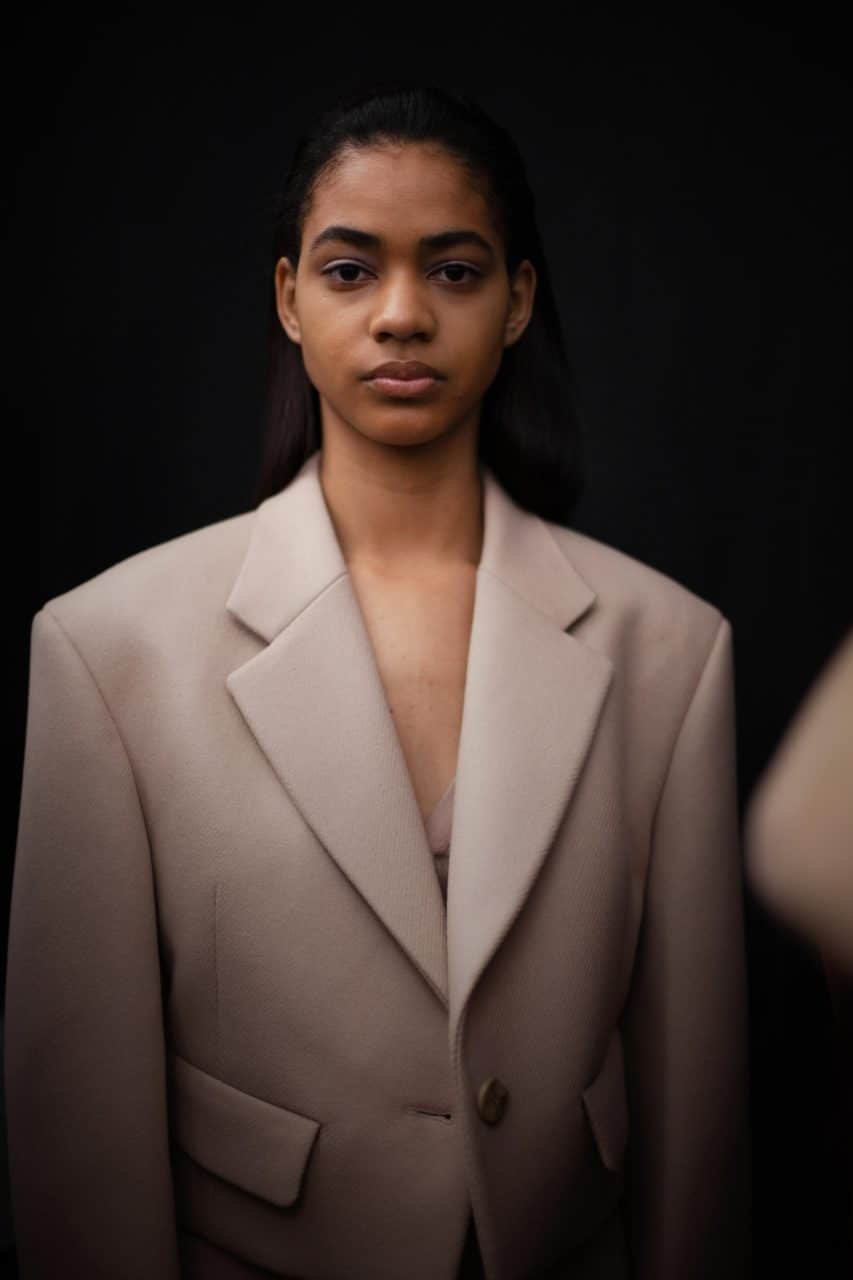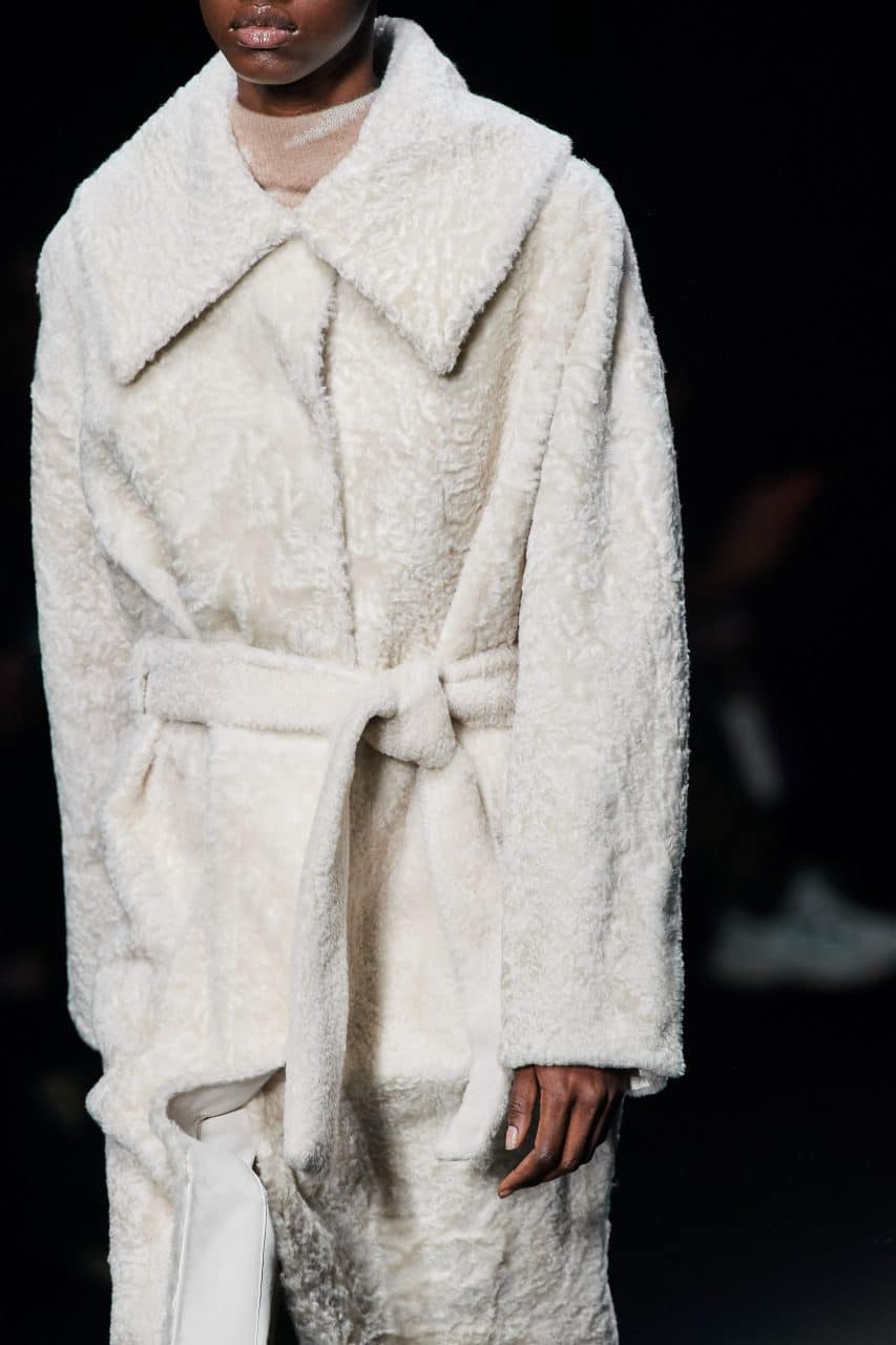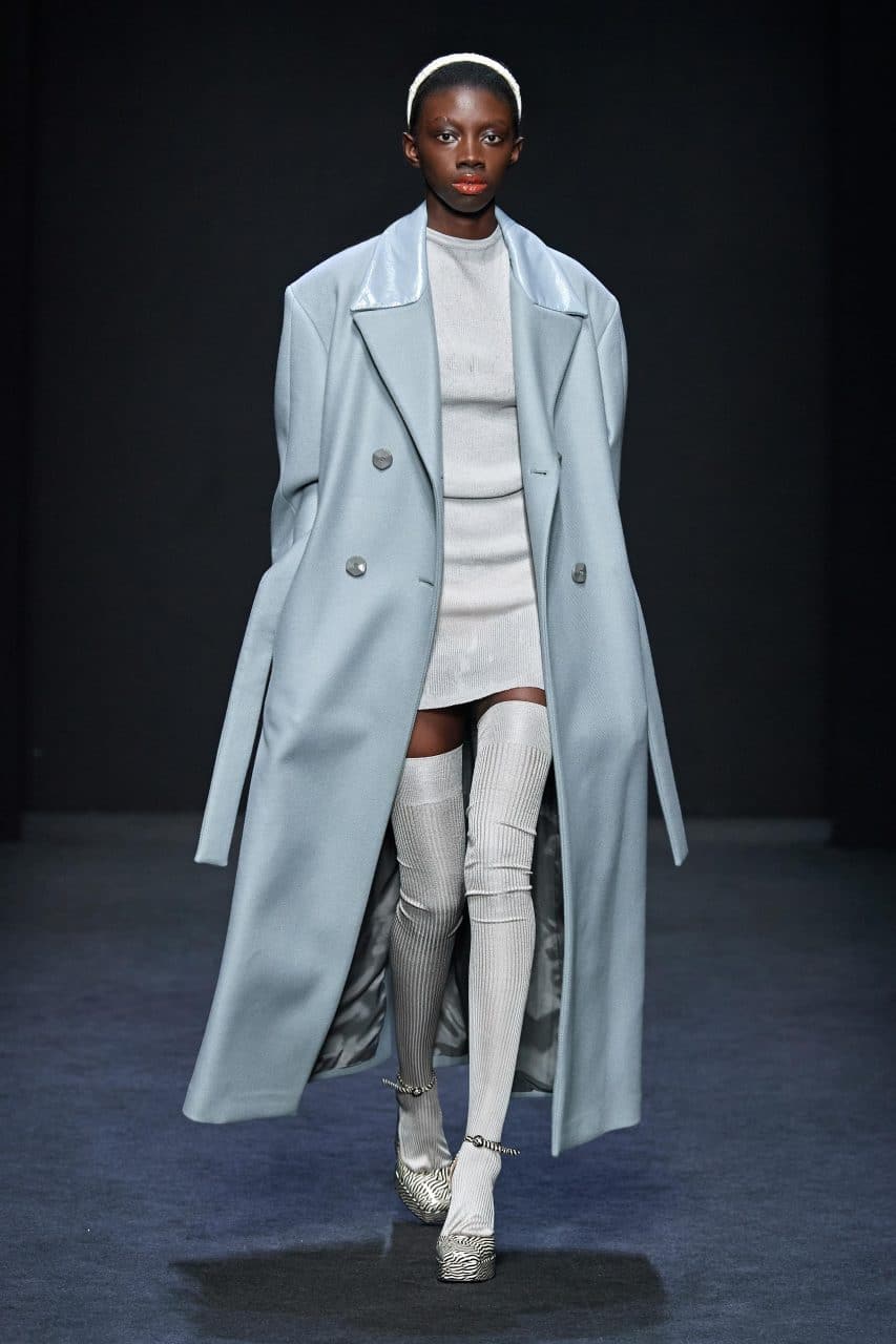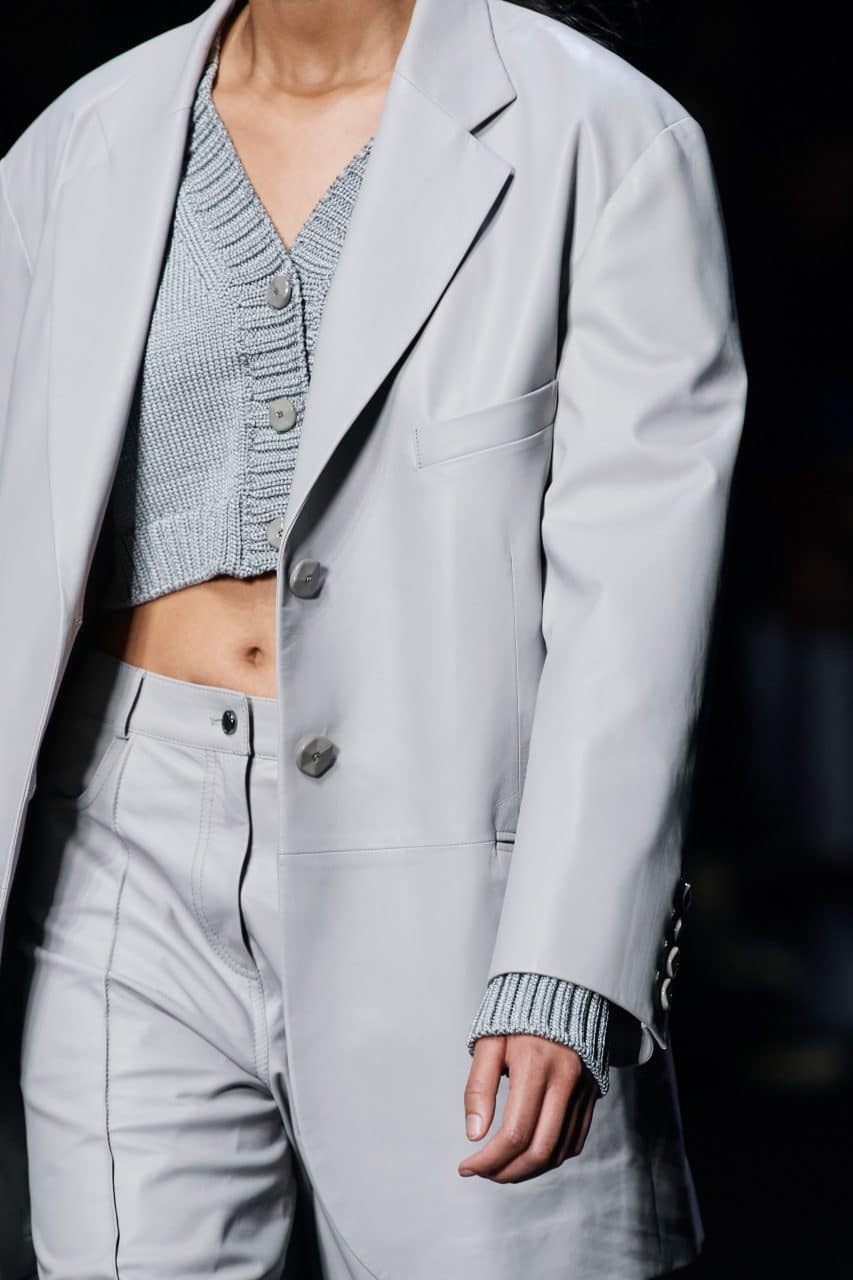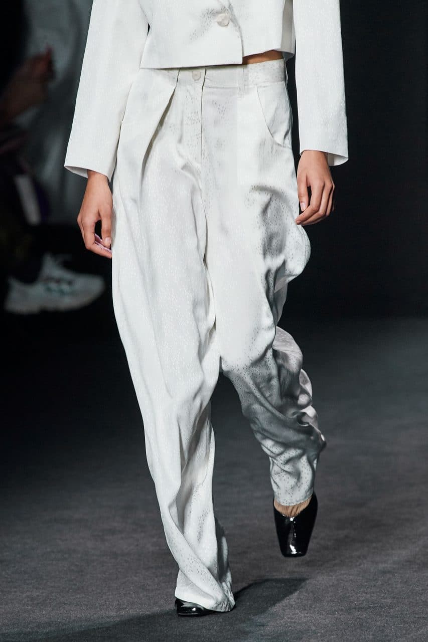 Each look involves a contrast: male oversized coats and jackets are combined with cropped volumes and mini dress with deep side slits, tough surfaces alternate with airy transparent fabrics, squared cuts are balanced by refined features, such as light ribbed knitwear and delicate retro inspired lingerie. The lines recall the late eighties/early nineties, but with a minimalist and essential approach. The protagonist of the collection affirms her sensuality by accepting and unveiling all her contradictory innerworlds.