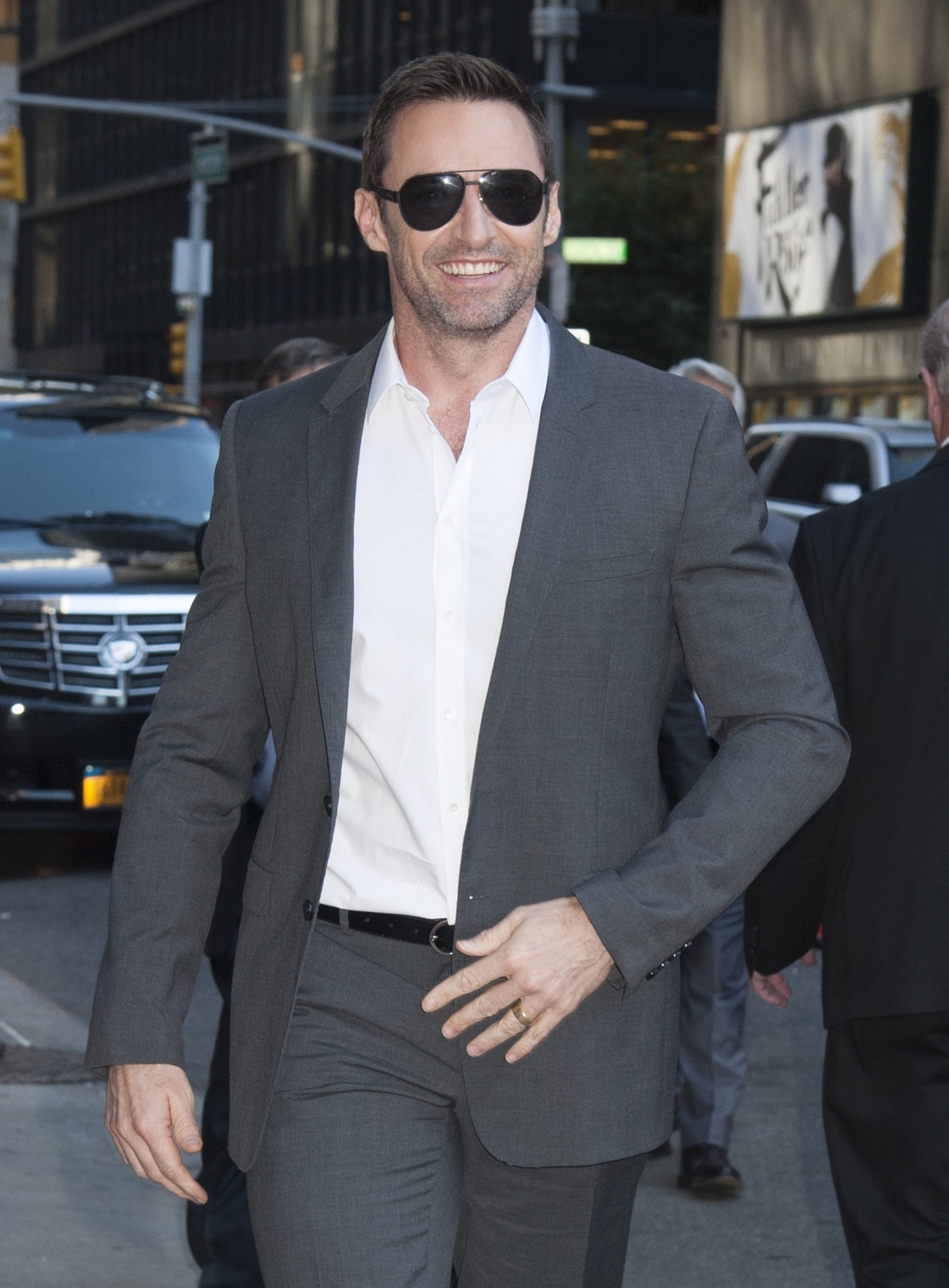 DOLCE&GABBANA EYEWEAR Hugh Jackman Arrives to Stephen Colbert Late Show-NY