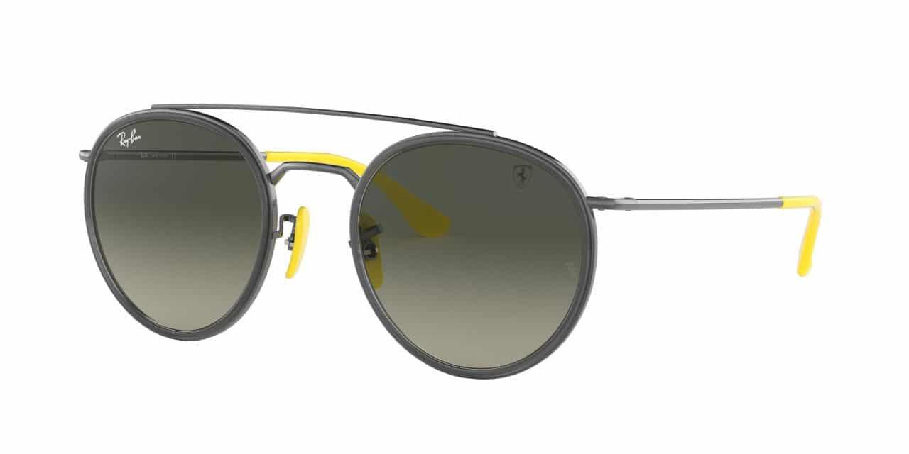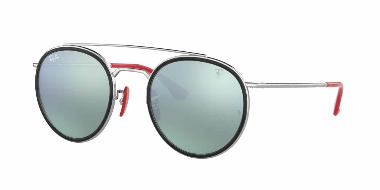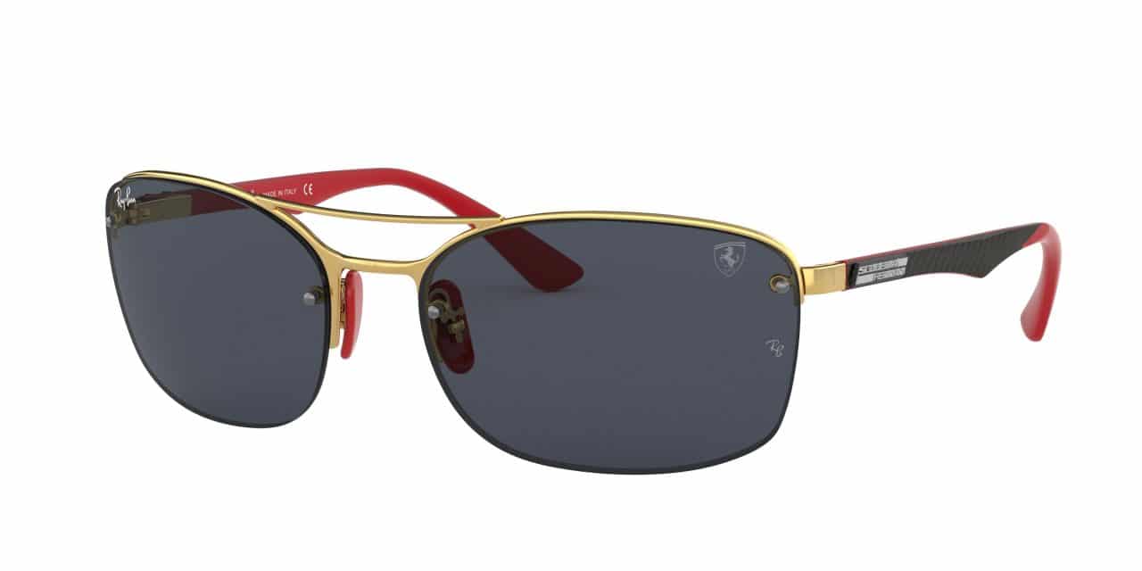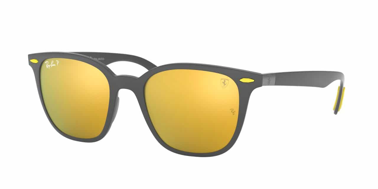 Just like in the racing world, Carbon fiber and rubber are an essential part of these high-tech frames. Mirrored chromance lenses create contrast to ensure optimal visibility, while a distinctive double bridge adds flair. The Scuderia Ferrari logo and shield speak to this look’s racing heritage, as do the iconic red and yellow rubber temple colorways.
