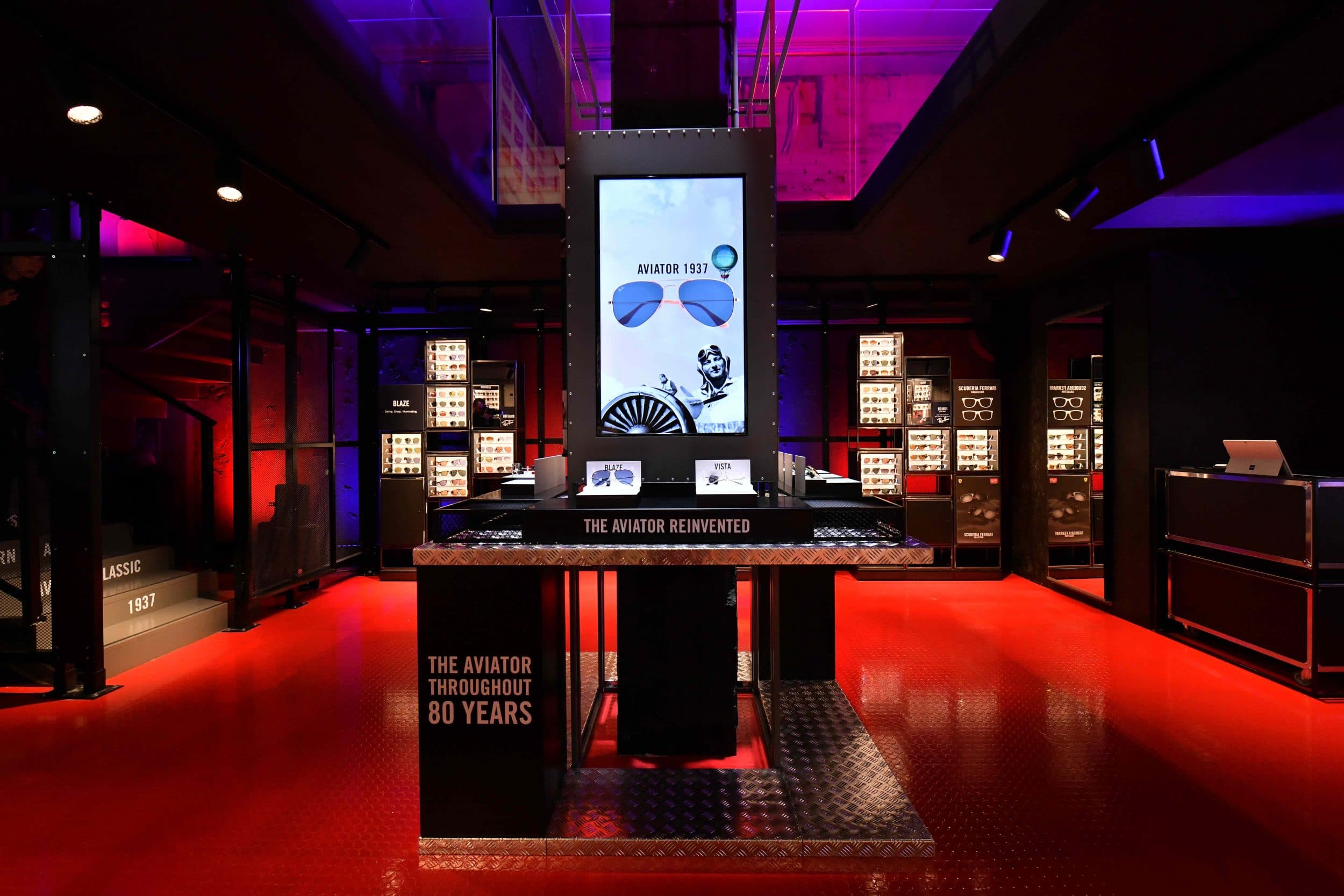 Un viaggio che inizia dall’esterno, dove ampie vetrine arricchite da contenuti video conducono il consumatore nel mondo delle storiche icone e dell’edizione limitata Ray-Ban Aviator 1937.
