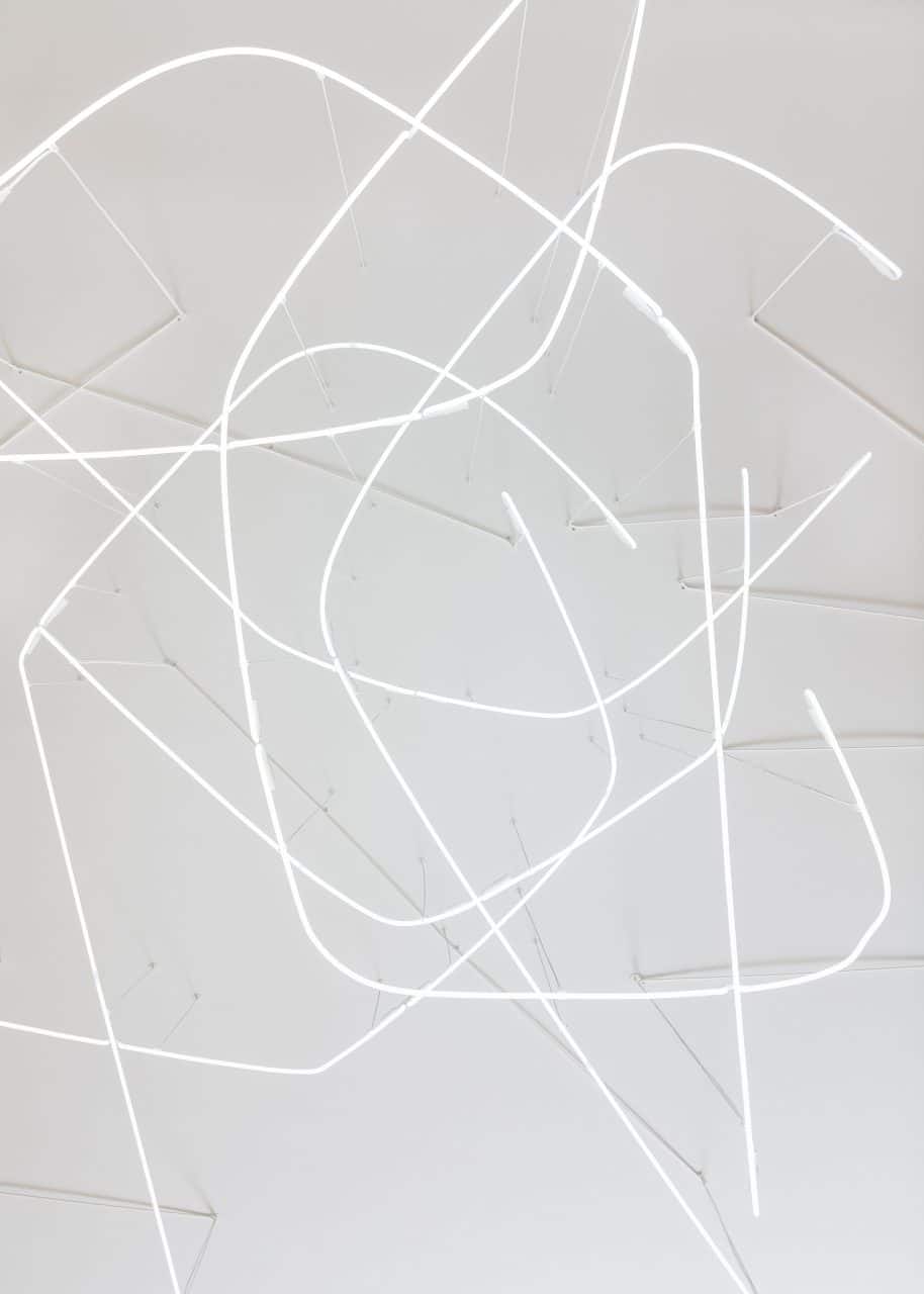 Oltre ai materiali, anche l’elettricità del negozio è rinnovabile al 100% con l’energia eolica fornita da Abest. Elementi di design unici nello spazio includono neon personalizzati dell’artista brasiliano Kleber Matheus. Un display video a sinistra dell’ingresso condivide la storia e la missione del marchio, per osservare l’intero processo di creazione di una scarpa: dai materiali innovativi ai salari equi che sono alla base del DNA di VEJA.